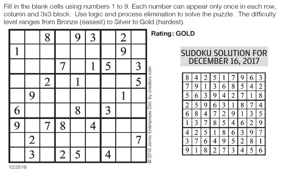 This is a place to learn and discuss sudoku puzzles. Play daily sudoku puzzles from gatehouse news service. Worried about damaging your sudoku puzzle with eraser marks? Puzzles range from easy to diabolical in level of difficulty, and answers for a puzzle . Fill in each square with a number, making sure no number repeats in each column or row.
